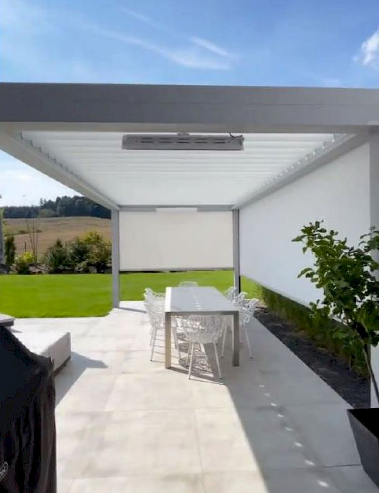 Unsere Lamellendächer lassen sich freistehend im Garten oder an die Hausfassade anschließen und mit vielfältigem Zubehör erweitern: