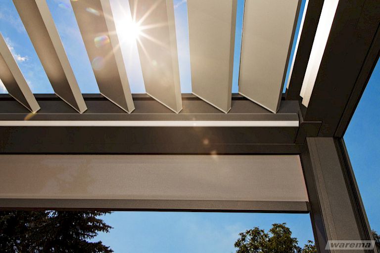 Das Lamellendach Lamaxa L70 Line ist eine Kombination aus L60 und L70 und bietet großflächigen Wind- und Wetterschutz.